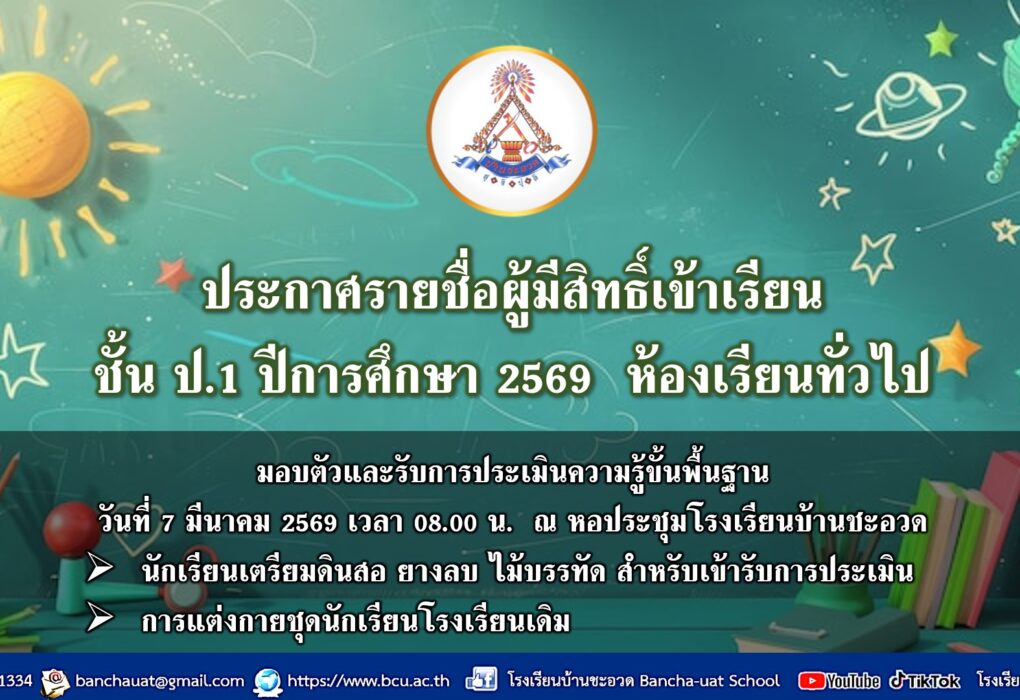📢ประกาศโรงเรียนบ้านชะอวด เรื่อง ปิดภาคเรียนที่ 1 และเปิ… - แจ้งนักเรียนที่สมัครสอบTEDET ประจำปี 2568 ตรวจสอบรายชื่อและแก้ไขข้อมูลการสมัคร