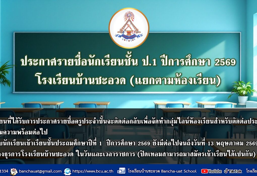 🔎 นักเรียนที่สมัครสอบประเมินโครงการประเมินและพัฒนาสู่คว… - ประกาศรายชื่อนักเรียนและห้องเรียน ปีการศึกษา 2568 โรงเรียนบ้านชะอวด