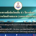 ประกาศรายชื่อและห้องเรียน นักเรียนชั้นประถมศึกษาปีที่ 1…