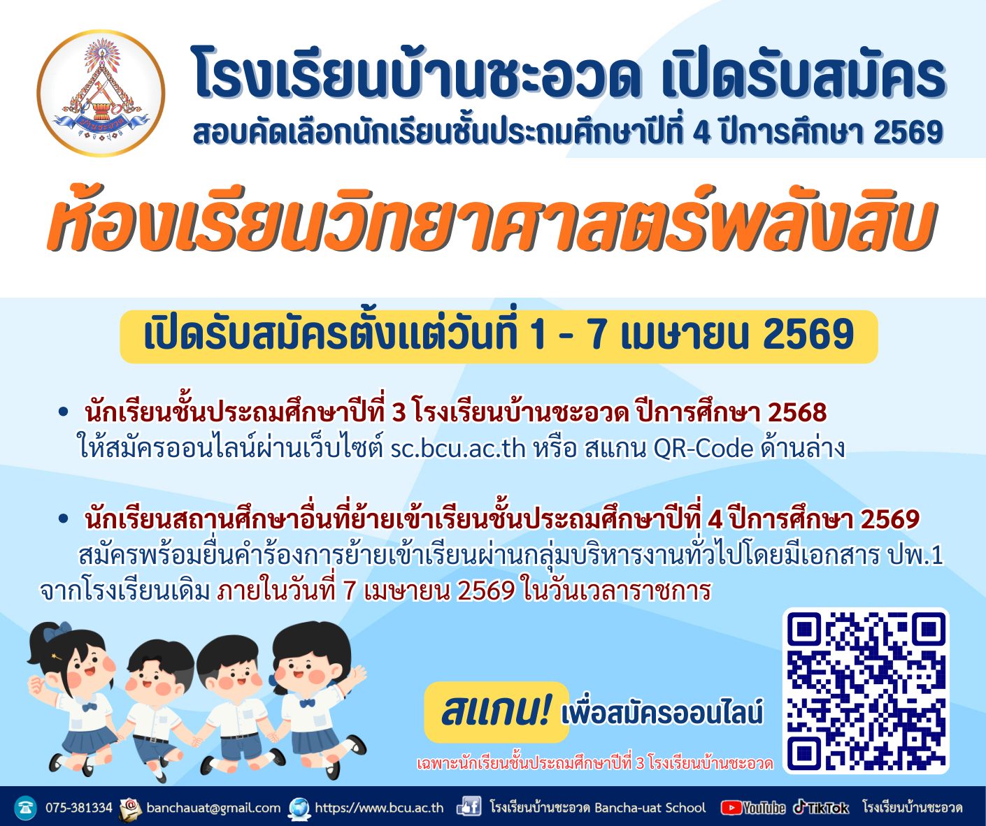 👉สนใจสมัครเข้าเรียนเพิ่มเติม หรือย้ายเข้าเรียนทุกระดับชั้น สามารถสมัครได้ในวันเวลาราชการ