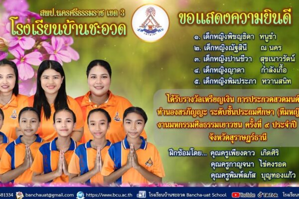 โรงเรียนบ้านชะอวด ขอแสดงความยินดีและชื่นชมนักเรียนได้รั…