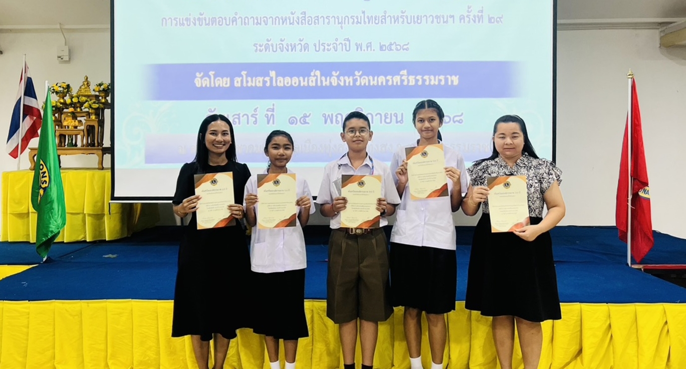 วันที่ 15 พฤศจิกายน 2568 โรงเรียนบ้านชะอวด ขอแสดงความยินดีและชื่นชมนักเรียนได้รับรางวัลชนะเลิศ การแข่งขันตอบคำถามจากหนังสือสารานุกรมไทยสำหรับเยาวชนระดับจังหวัด ครั้งที่ 29 ประจำปี 2568 ณ ศาลาประชาคมเทศบาลเมืองทุ่งสง อ.ทุ่งสง จ.นครศรีธรรมราช นักเรียนผู้เข้าแข่งขันดังนี้