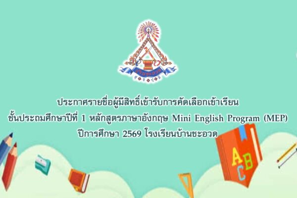 ประกาศรายชื่อผู้มีสิทธิ์เข้ารับการคัดเลือกเข้าเรียนชั้น ป.1 MEP ปีการศึกษา 2569 โรงเรียนบ้านชะอวด