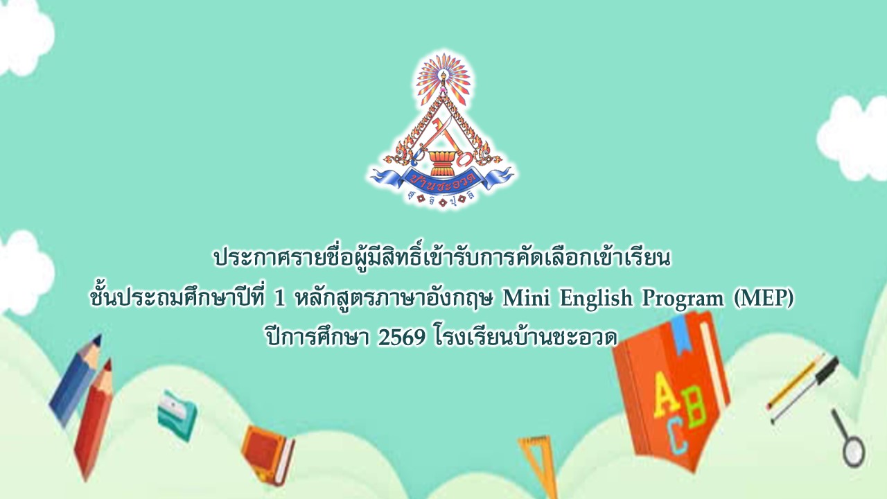ประกาศรายชื่อผู้มีสิทธิ์เข้ารับการคัดเลือกเข้าเรียนชั้น ป.1 MEP ปีการศึกษา 2569 โรงเรียนบ้านชะอวด